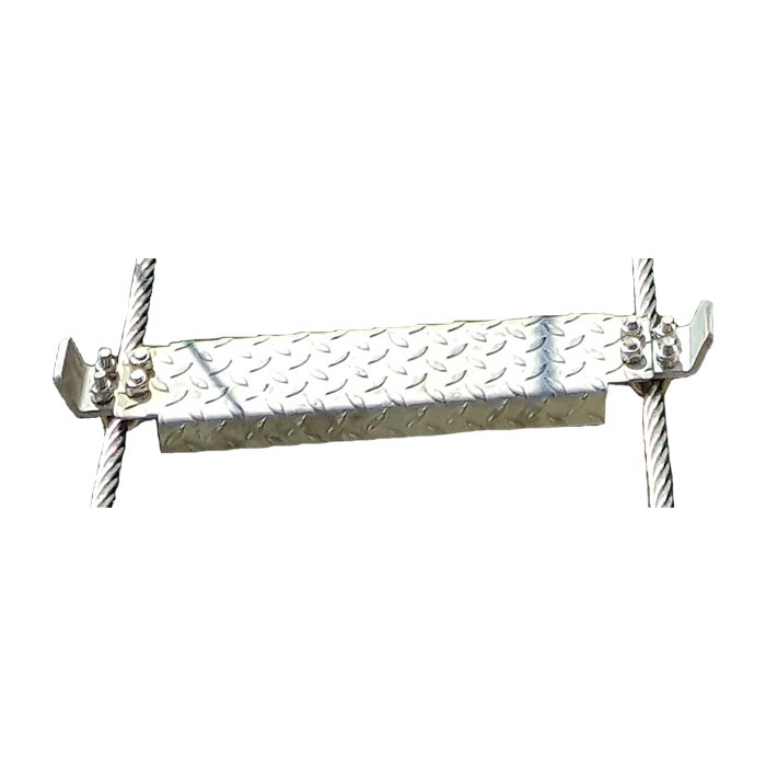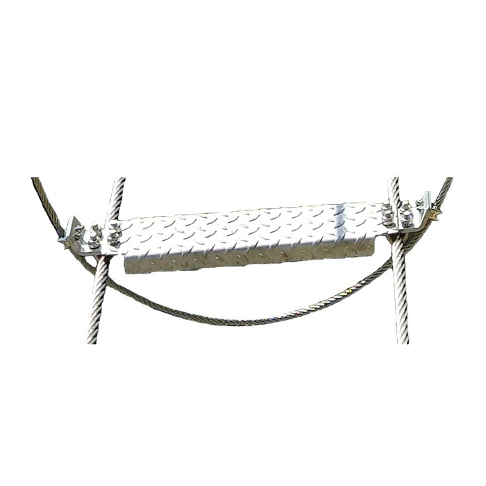 Unser Klettersteig Hängebrücke Trittblech ist perfekt für den Klettersteigbau. Denn es lässt sich bei Brücken mit den vormontierten Seilklammern perfekt an den beiden Tragseilen befestigen.