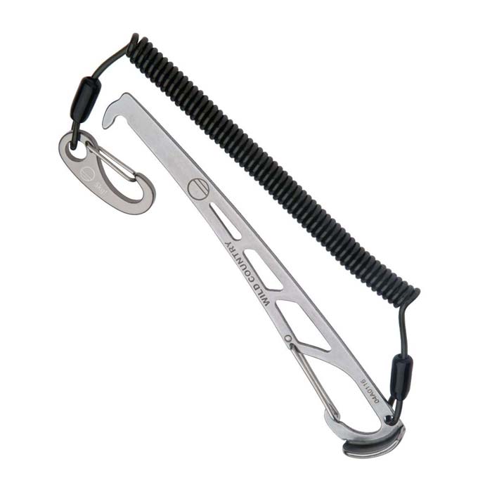 Erstens ist er aus richtig festem, 3mm dickem Stahlblech gemacht. Das gibt ihm ordentlich Stabilität. So kann man auch mal unbeschwert mit dem Hammer nachhelfen, wenn sich ein Klemmkeil nicht lösen lässt. Dafür hat das Ende des Griffes auch extra einen kleinen Flansch. Zweitens hat er eine richtig gute Länge. Zum einen lang genug um auch tief liegende Placements zu erreichen. Zum anderen aber auch so kurz, dass er am Gurt nicht stört.